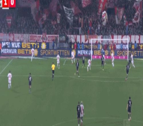 第84分钟,凯恩后场长传,迪亚斯横传助攻卡尔低射破门!科隆1-3拜仁