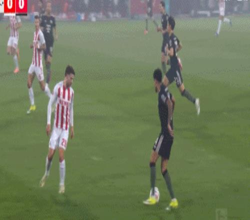 第20分钟,迪亚斯倒三角回传,格纳布里准备射门被克劳斯破坏