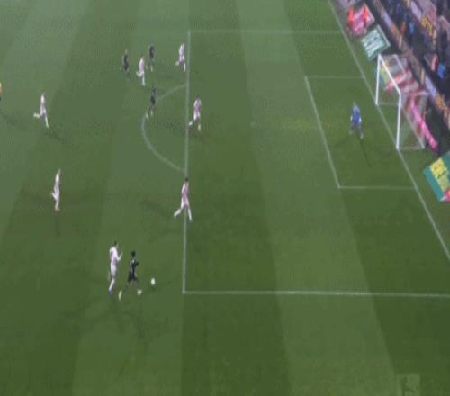 凯恩后场长传,路易斯-迪亚斯左路内切横向突破,门前顺势横敲做球,伦纳特-卡尔推射命中,3-1!