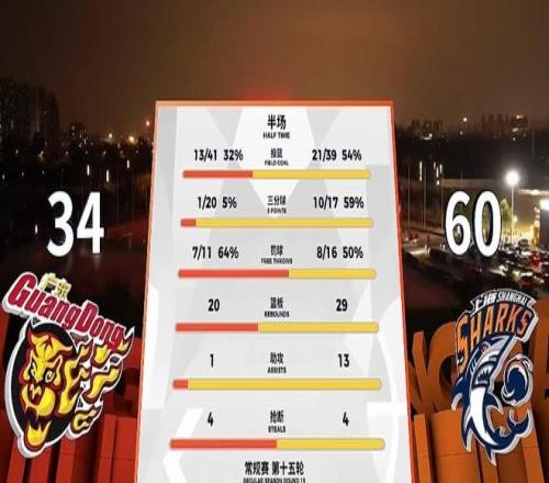 上一轮被深圳爆冷,这一场上海整队都打得异常兴奋,把输球的怒火都发泄给了广东,半场战罢,上海三分17中10,广东三分19中1,徐、胡合计16中2,广东34-60大比分落后!