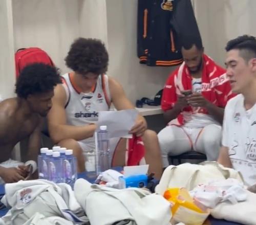 领导还进行了讲话:胜利也是一场比赛,回去准备好两场主场比赛,把胜利延续下去,不要因为一场赢了很多分就觉得激动,激动不要过了今晚。这样的话语也是告诉大家不要有任何膨胀的情绪,因为现在CBA的冷门非常多,他们还是要巩固住攻守侵略性。