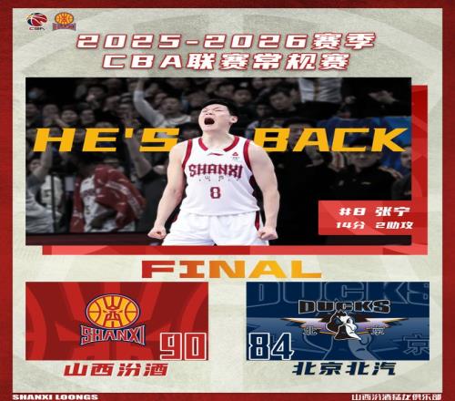 战报张宁复出山西汾酒9084力克北京北汽