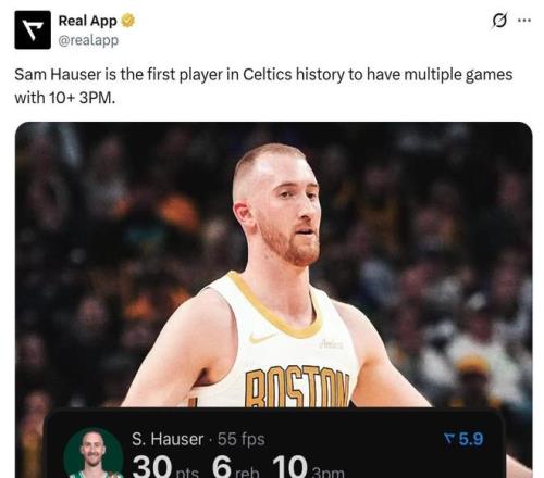 在他的带领下,凯尔特人第二节狂轰52分刷新球队队史第二节单节得分纪录,此前纪录是24年11月对阵快船时的51分。