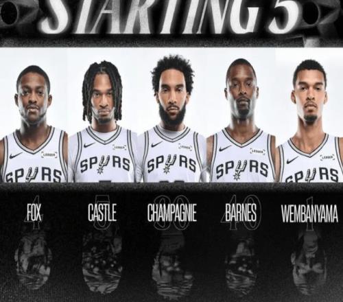 首发阵容方面,森林狼这边,当家球星爱德华兹迎来复出,戈贝尔缺阵,教练排出的最新首发五人组为:丹特·迪温琴佐、安东尼·爱德华兹、杰登·麦克丹尼尔斯、朱利叶斯·兰德尔和纳兹-里德;马刺队这边,瓦塞尔缺战,首发阵容则为:达龙·福克斯、史蒂芬·卡斯尔、朱利安·尚帕尼、哈里森·巴恩斯和维克托·文班亚马。