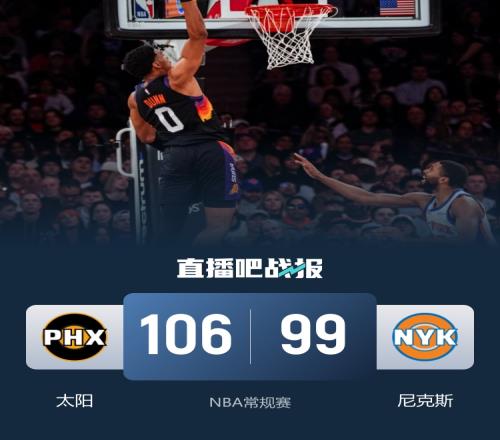 太阳送尼克斯3连败布克27分狄龙13中2唐斯23+11