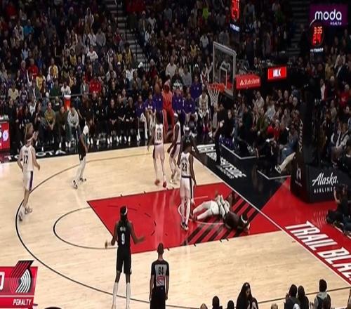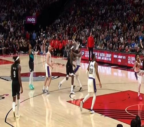 小摩擦!斯玛特突破上篮得手&起身时压到里斯随后回防拼抢犯规