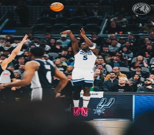 因为文班第二节的爆发,马刺一度领先森林狼25分。森林狼可谓是风雨交加,戈贝尔不打,里德伤退,爱德华兹的脚伤复发在比赛里一瘸一拐的。在比赛里,森林狼距离放弃可能就差一个契机,然而华子直到比赛结束也没挥出白旗。