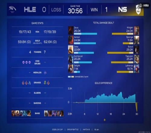体育播报1月18日宣 2026年LCK杯继续进行中,今天的首场比赛是NS对阵HLE!