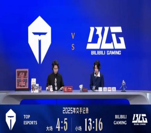 1.在今日直播流给出的数据中,TES与BLG在2025年交手多次,其中大场交手情况为TES 4:5 BLG;小场交手情况为TES 13:16 BLG。