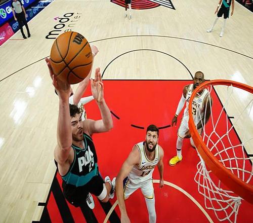 手感不佳又如何!开拓者内线新星还是轻松打爆了湖人的内线