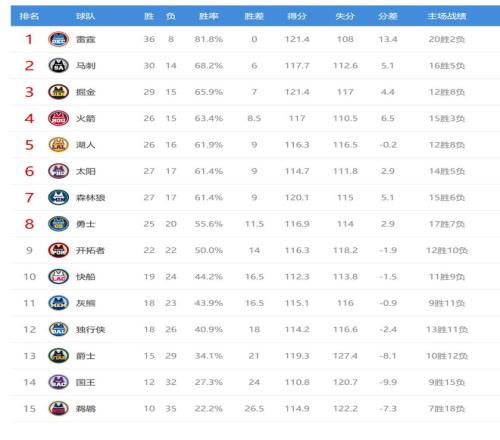 国王输球后12胜32负,排名西部第14。