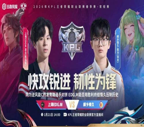 体育播报1月21日宣 2026KPL春季赛本场比赛是由上海EDG.M对阵到桐乡情久!