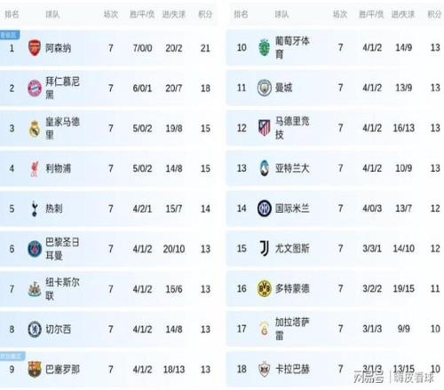 从积分榜来看,七连胜的阿森纳,已经锁定前两名,随后是18分的拜仁慕尼黑,以及15分的皇家马德里和利物浦,热刺14分,紧接着的7支球队,同积13分。相信,这13支球队,将是直通16强的最有力争夺者。