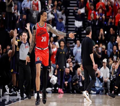 在此前的一场NBA常规赛中,主场作战的洛杉矶快船最终还是抵挡住了同城对手洛杉矶湖人的疯狂反扑,以112比104战胜了对手。本场比赛后,在最近8场比赛中拿下了7场胜利的快船的战绩提升到了20胜24负,继续排名西部第10位;而结束了两连胜的湖人的战绩则是下滑到了26胜17负,排名也是被菲尼克斯太阳反超而跌到了西部第6位,并且与身后的明尼苏达森林狼的胜场差为0场。