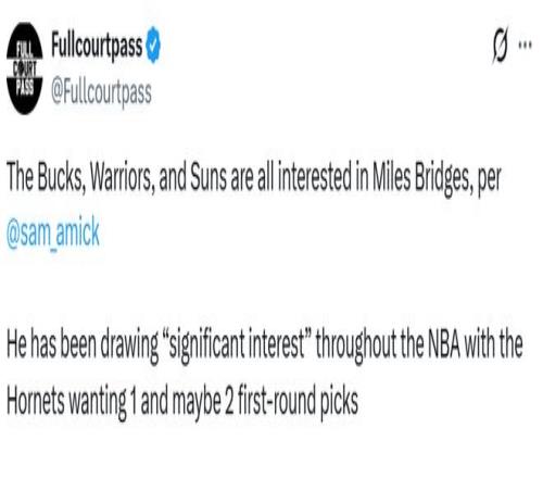 勇士等多队追求布里奇斯!黄蜂要价12个首轮库明加大概率成筹码