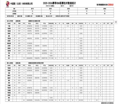2025-2026赛季CBA常规赛第十八轮,辽宁本钢对阵山东高速的比赛于23日晚在辽宁体育馆进行,辽宁本钢队最终79:84憾负山东高速。