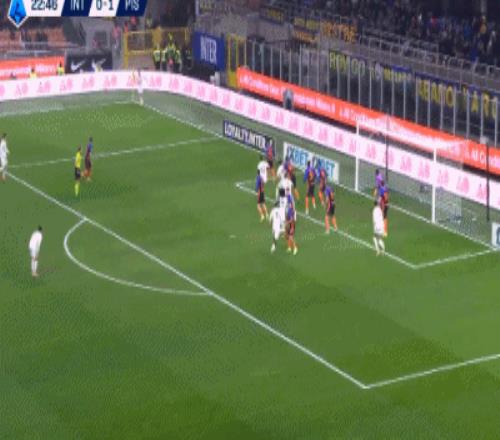 第70分钟,巴斯托尼左路传中,奥古斯托禁区内凌空扫射,稍稍高出横梁,比萨门前风声鹤唳。第82分钟,博尼断球策动反击,小图拉姆右路传中,迪马尔科跟上凌空扫射,皮球击中立柱入网,国米锁定胜局,4-2!