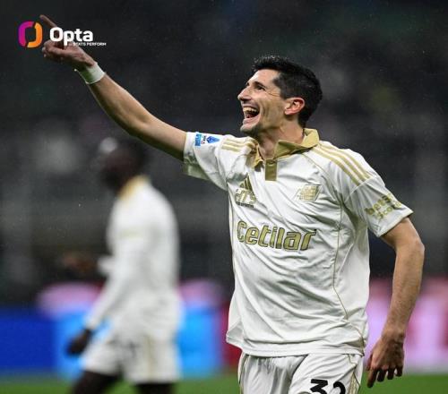 意甲第22轮,比萨客场对阵国际米兰,开场不到半个小时,比萨中场莫雷奥上演梅开二度,成为自2020年的伊布以来,首位意甲开场30分钟对国米打入两球的球员。