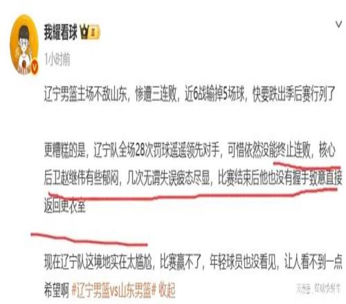 辽篮三连败被打崩溃赵继伟赛后拒绝与山东握手:输球又败人品