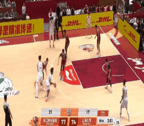 李悦洲的关键3分让浙江男篮在最后1分钟时手握5分领先,上海男篮陷入绝境。