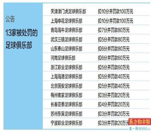公告称,依据俱乐部在案件中所涉不正当交易的金额、情节、性质以及社会影响,现作出如下处罚:给予天津津门虎足球俱乐部等13家俱乐部扣除2026赛季职业联赛积分并罚款的处罚。