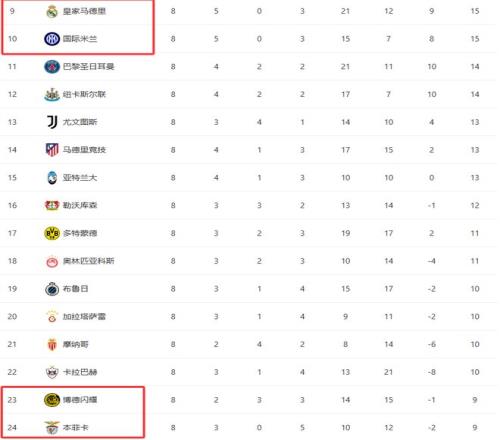根据欧冠联赛阶段排名,积分榜前8名的球队已经锁定直通16强的资格,无需参加附加赛。他们分别是:英超阿森纳、德甲拜仁慕尼黑、英超利物浦、英超热刺、西甲巴萨、英超切尔西、葡超葡萄牙体育和英超曼城。