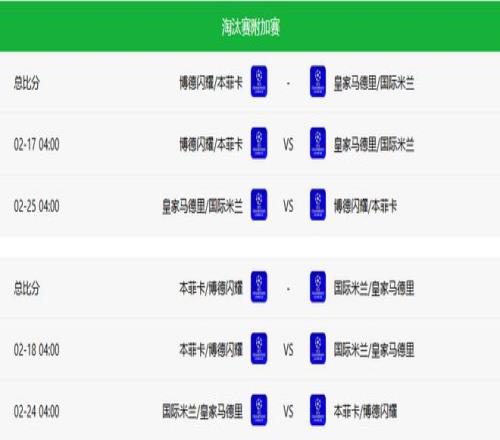 全部附加赛结束后,欧冠16强名单将正式出炉,并于2月27日进行真正的16强抽签。