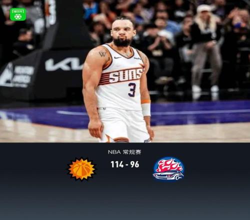 第四节太阳罗伊斯-奥尼尔拿下6分,活塞邓肯-罗宾逊拿下4分,最终太阳114-96战胜活塞