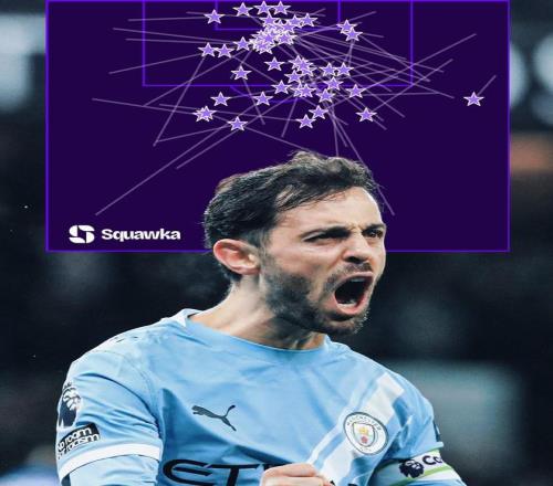 B席达成英超50次助攻,成为继德布劳内后瓜帅麾下曼城第二人